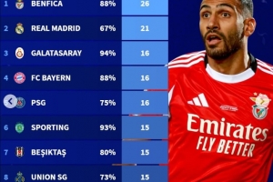 体育资讯1月7日讯 德转统计了2025年有关点球的数据,以下是2025年获得点球次数的前10联赛俱乐部排行榜。