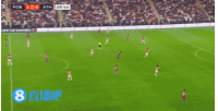 比赛第30分钟,巴萨连续传球配合,拉菲尼亚下底低平球传中,后点的费尔明轻松包抄得手!