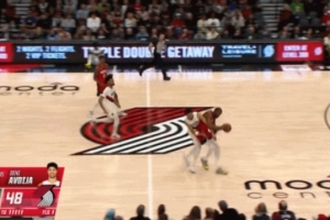 GIF-亚当斯前场板拍出来、杜兰特和卡马拉撞一起了
