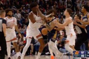 客战老鹰!杰伦·布朗:希望波津在这过得开心 今天见到他很高兴