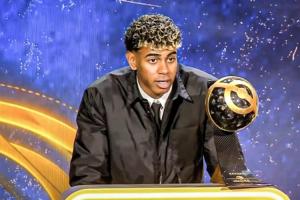 体育资讯12月29日讯 环足奖颁奖典礼正在进行中,亚马尔当选为2025环足奖最佳前锋奖。
