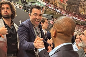 巴萨名宿克鲁伊维特现场观看了这场比赛,见证老东家夺冠,并与巴萨总监德科见面,他在社交媒体上晒出相关照片。