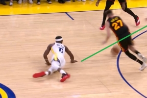 GIF-巴特勒倒地拼抢,库里追身三分