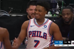 得分平赛季纪录!泰森迎着恩比德压哨高抛命中 个人27分