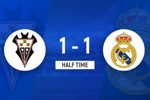 上半场伤停补时2分钟,半场结束,皇马暂1-1阿尔瓦塞特。