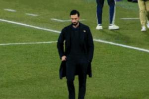 赛后,镜头反复给到新帅阿韦洛亚,他表情脸色铁青,手插在兜里,形成鲜明对比的是西乙阿尔瓦塞特将帅的疯狂庆祝!
