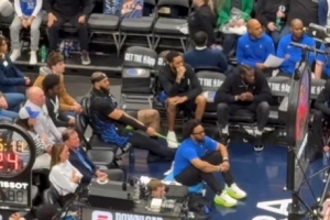 独行侠队记Grant Afseth晒出加福德在场边拉伸脚踝的镜头,并写道:“看起来丹尼尔·加福德正在尝试拉伸他的右脚踝——自训练营以来,这个部位就一直断断续续地困扰着他。”