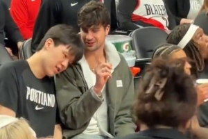 此役,杨瀚森未能获得出场机会,场边与同样缺阵的阿夫迪亚有说有笑,还靠了下对方的肩膀。