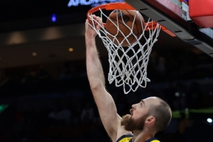 攻防发力!戈贝尔抢劫生断杜兰特 随后长传助攻兰德尔反击得手