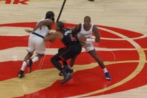 赚到!奥科吉被里德顶翻吹防守犯规 火箭挑战成功改进攻犯规