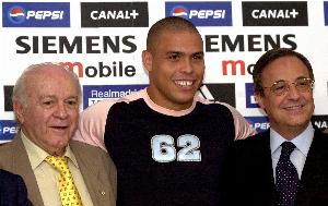罗纳尔多向论坛解释道:"皇马当时负债3亿欧元。弗洛伦蒂诺以这个价格出售了体育城,然后在机场旁买下了另一块土地(瓦尔德贝巴斯)。他投资顶级球员,先签下菲戈,接着是齐达内、我和贝克汉姆。我们四位银河战舰成员。他改变了人们观看足球的方式。这是足球产业最大的变革。足球运动能发展成如今我们所见的面貌,正是源于弗洛伦蒂诺·佩雷斯。他对我而言如同父亲,我们保持着深厚友谊。"