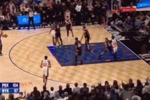 小摩擦!斯玛特突破上篮得手&起身时压到里斯 随后回防拼抢犯规