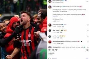 “非常感谢球迷们(又一次)的热烈支持!❤️🖤@AC米兰。加油红黑军团!!!🫶🏼”