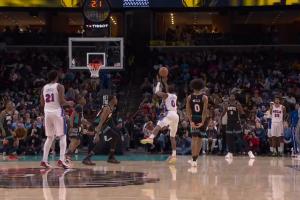 泰山压顶!泰森溜底线切入接球单臂砸扣恩比德