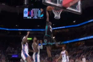 得分平赛季纪录!泰森迎着恩比德压哨高抛命中 个人27分