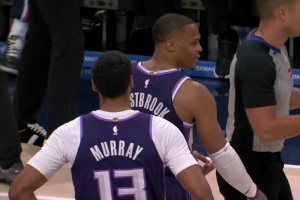 依旧自信十足!开场不久投进超远三分是否没想到?威少:怎么可能