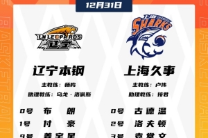 体育资讯12月31日讯 今晚19:35,辽宁主场迎战上海。赛前双方公布了本场大名单。