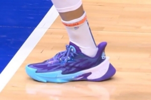本场比赛,库里赛前热身环节,穿回了UA,上脚了库里品牌的旗舰鞋款Curry Series 7。