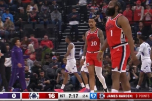 奋力反击!哈登传射建功&桑德斯两罚全中 快船12-2反超比分