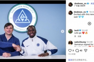 签约后奥乌苏更新社媒,晒出与新鹏城总监丹尼尔·施坦茨的握手照,并配文写道:“非常兴奋能开启新的征程!我已迫不及待想迎接它的到来!”