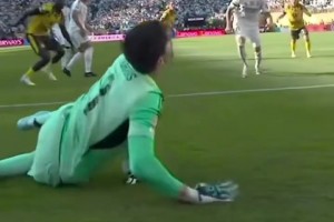 直接懵了!里尔门将遭登贝莱神仙吊射,躺球门里思考人生目瞪口呆